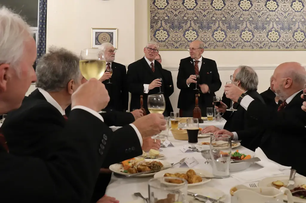 The labour over, the chapter was closed and the assembled throng moved from the vault to rest and refreshment and another first-rate Festive Board complete with plenty of laughter and, of course, some scrummy Yenton fayre. One momentous change in office had seen Graham Lewis stand down as Scribe Ezra having held that important office for no fewer than 11 years. The MEZ made a suitable presentation of a bottle of Graham’s favourite tipple to mark his great contribution to the life of the chapter.